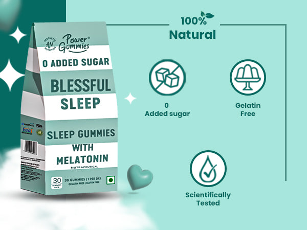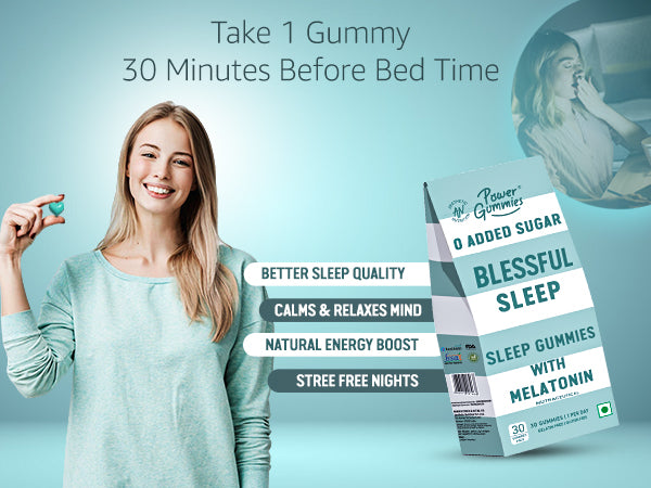 Ever wondered how you would look after waking up from your sound sleep and mirrored youthful skin. Power Gummies Blessful Sleep for beauty is what you need to explore a revived night-time care regime. These gummies are crafted with handpicked ingredients like Passiflora Extract, Naturally extracted Melatonin and Vitamin B6. The delightful taste of passion fruit, you can’t resist. Blessful Sleep Gummies will help you swiftly drift into a sounder good night's sleep and repair your skin while you drool. You will get flawless skin and super-relaxed “You” every morning! You deserve a sleep routine that cares for you and evokes the notion of Love yourself.