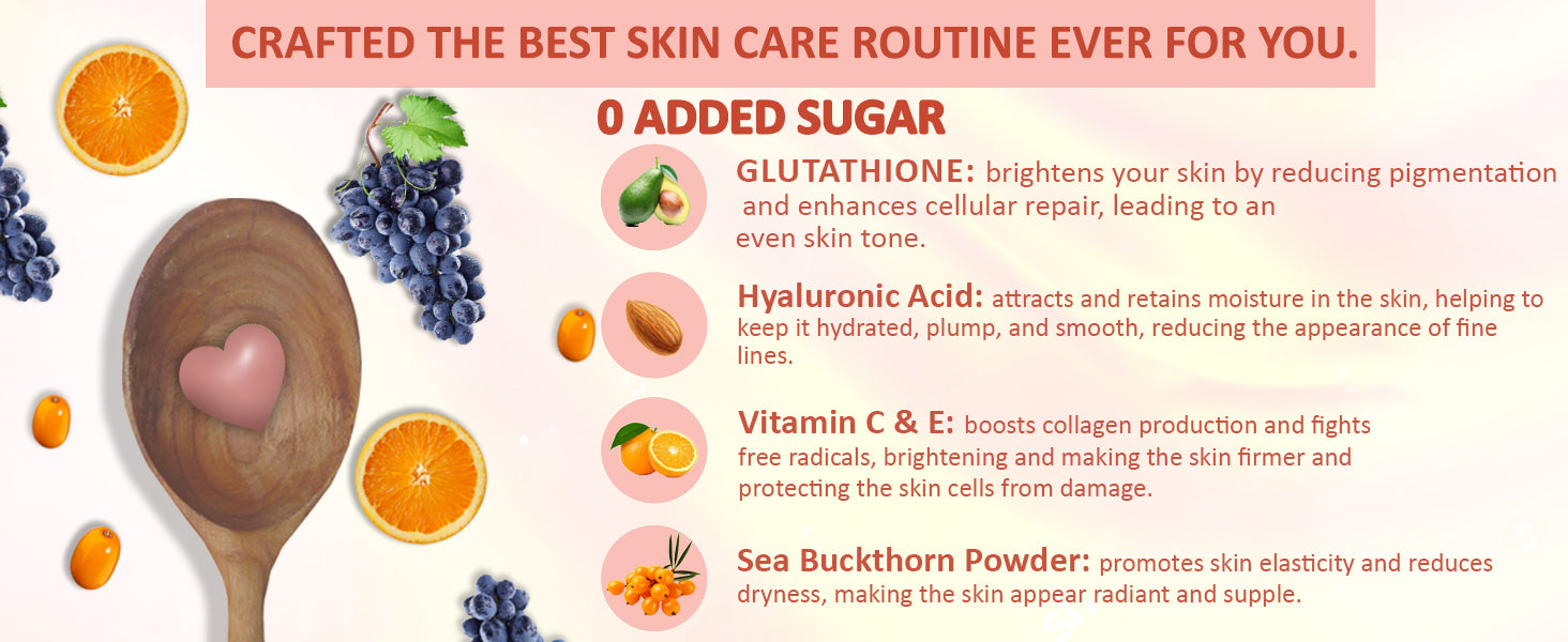 • No Added Sugar: Enjoy glowing skin without worrying about added sugars in your daily beauty routine.